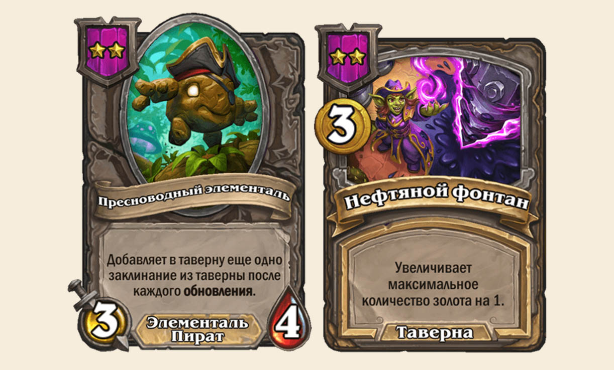 Суть стратегии 2 уровня таверны — агрессивно искать Пресноводного элементаля и Нефтяной фонтан. Подход тут простой: чем больше Пресноводных элементалей вы найдете (покупайте их в любом количестве), тем чаще будут заходить Нефтяные фонтаны. И чем больше в таверне Заклинаний, тем проще активировать силу героя дешевыми и даже бесплатными Заклинаниями, чтобы брать Нефтяной фонтан бесплатно.
