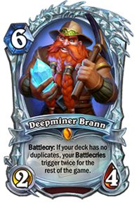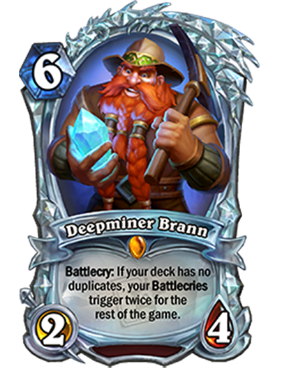 Бранн — одна из двух новых карт для колод без копий в наборе «Исследуйте глубины Подземья»! Бранн также появится в алмазной версии для тех, кто приобретет золотой мини-набор.