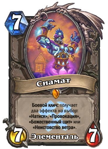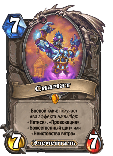 - Положить в Вольную колоду двух Сиаматов (из Спасителей Ульдума и из Основного набора) одновременно нельзя.